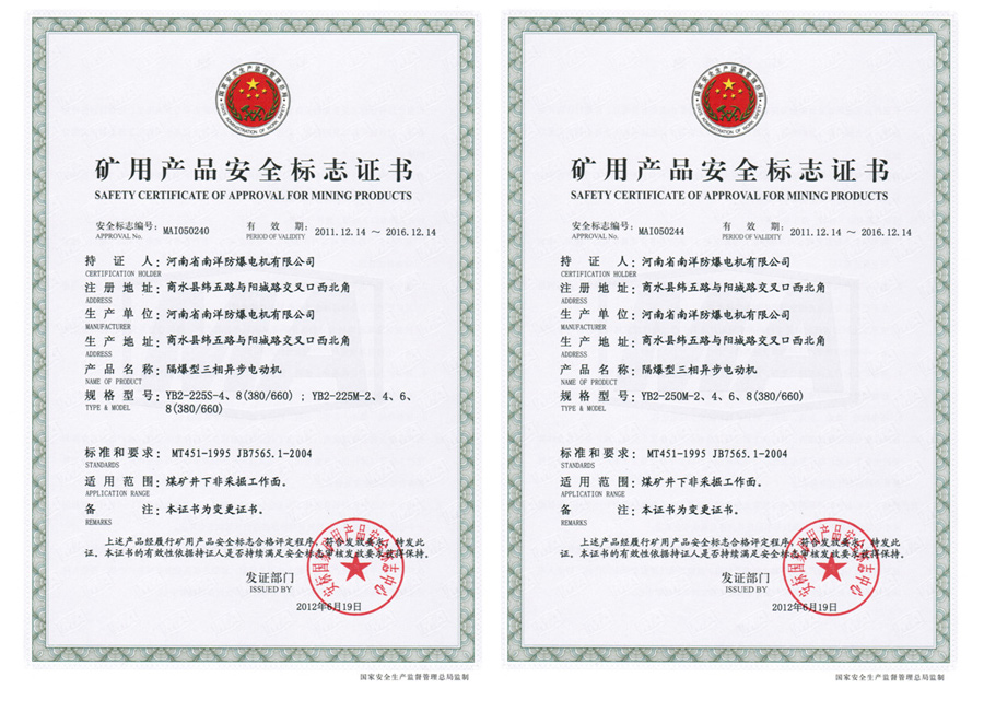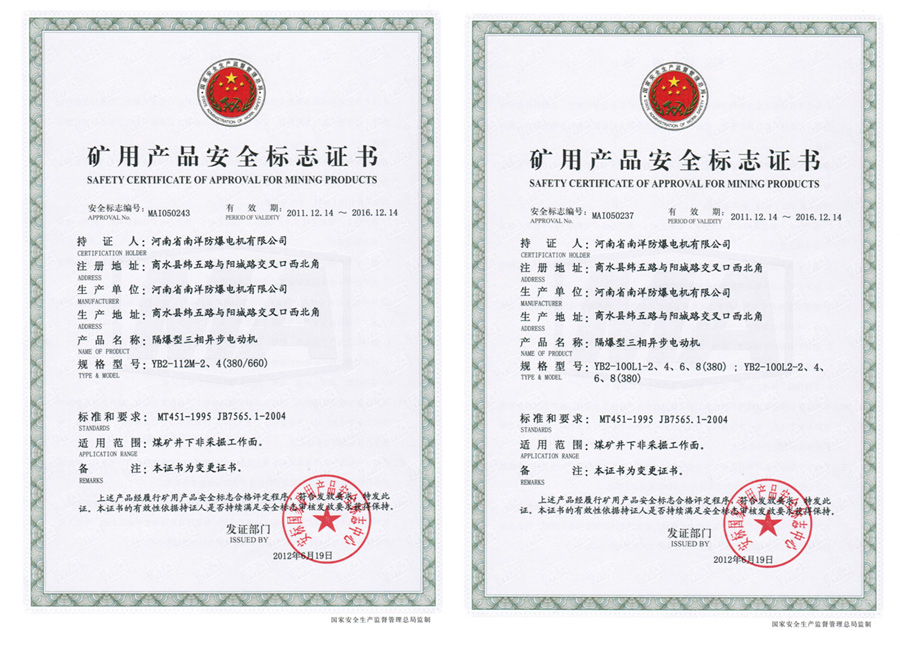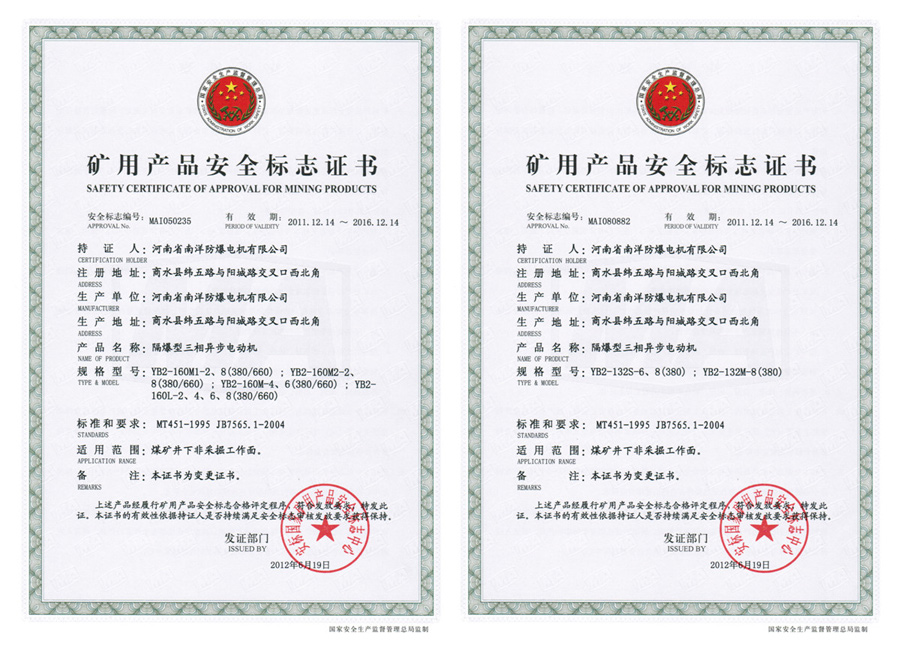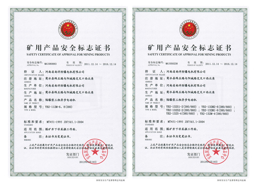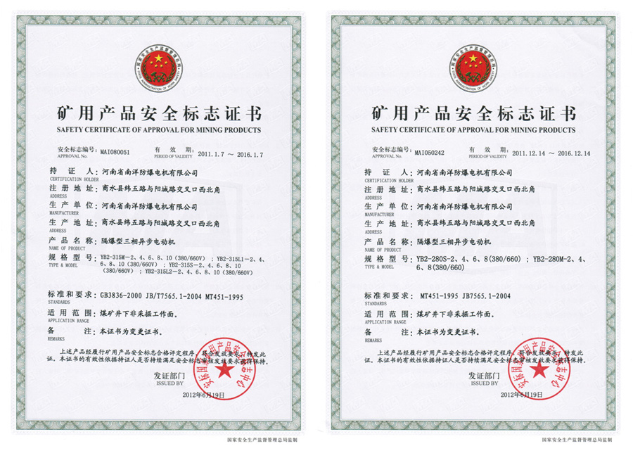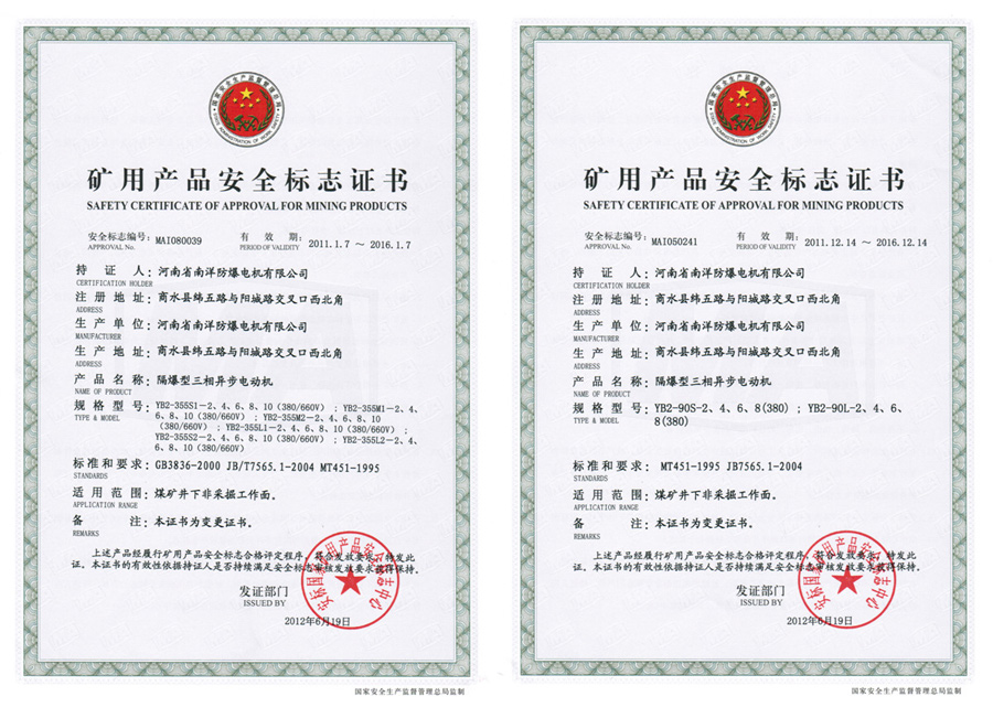 YB2 explosion-proof motor for coal mine non-mining working space And the hazardous locations has IIA, IIB temperature group T1-T4 group of explosive mixtures exist .