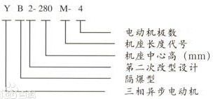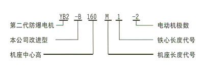 YB2——第二代防爆電機(jī);160——中心高160MM; M——鐵心長(zhǎng)度代號(hào);4——電極數(shù);