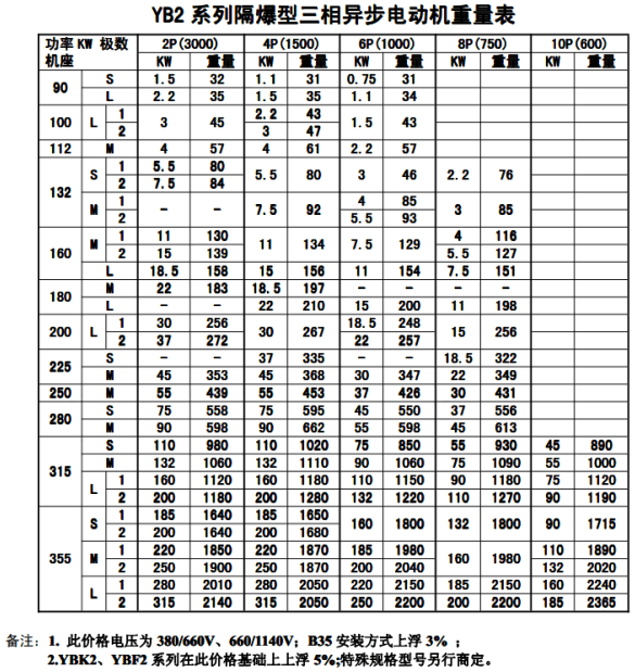 防爆電機選型、機座號、重量表大全