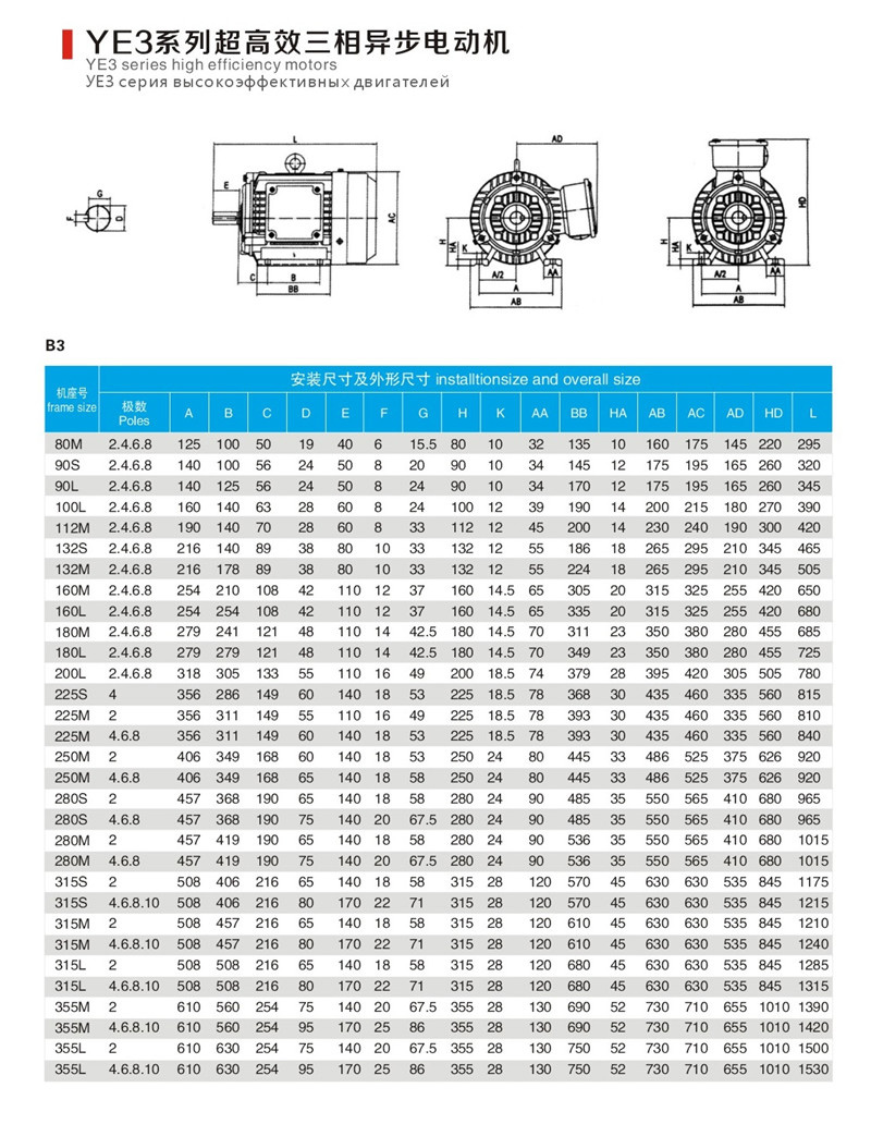 YE3系列三相異步電動機(jī)(中心高80-355),簡稱YE3電動機(jī)。具有外形美觀、高效節(jié)能、噪聲低、振動小、運行可靠等優(yōu)點。特別是對年運行率高的一般工業(yè)用途的風(fēng)機(jī)、水泵、壓縮機(jī)等場合。